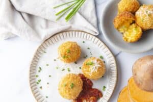 - Legen Sie sie in den Korb der Heißluftfritteuse und backen Sie sie 15 Minuten lang, bis sie knusprig und zart sind.