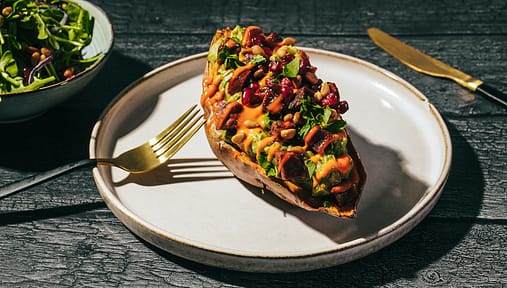Probieren Sie dieses Rezept für Süßkartoffel-Dauphinoise aus, um eine cremige und gemütliche Abwandlung einer klassischen französischen Beilage zu erhalten, oder wenn Sie ein leichtes Abendessen suchen, probieren Sie unsere mit Salsa und Guacamole gefüllten Süßkartoffeln.