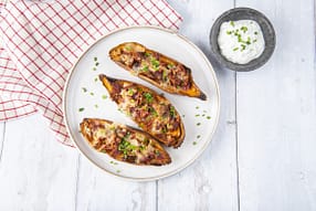 Gefüllte Süßkartoffeln mit Salsa und Guacamole & Knusprige Süßkartoffelschalen mit Käse und Speck